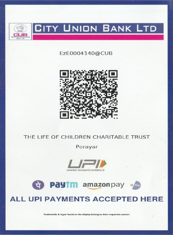 You can send in an email, call up or write to The Life Of Children Trust if you are interested in donating to us. The help you give will help in bringing about a permanent, effective and a positive change in the lives of the needy and the poor children in Tamilnadu. With your help we will be able to address the root cause behind violation of child's rights. Besides this, you can help us in making the state accountable to the needs of the poor children and their right to free heartsurgery, education, medication, relief, food etc.